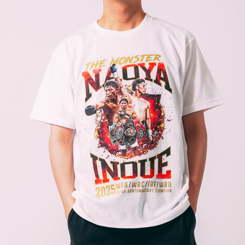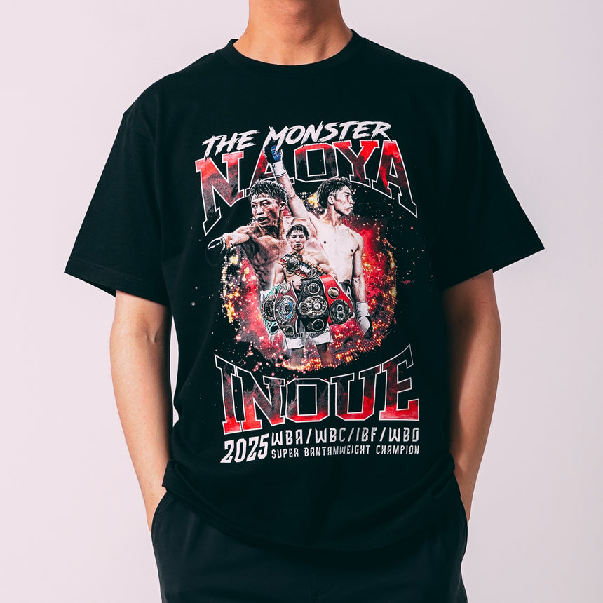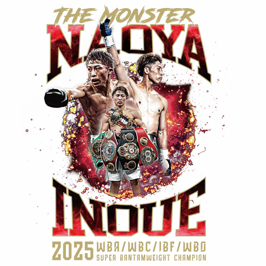 4団体統一王者・井上尚弥選手の比類なき才能と闘志を、炎のごときデザインで表現。