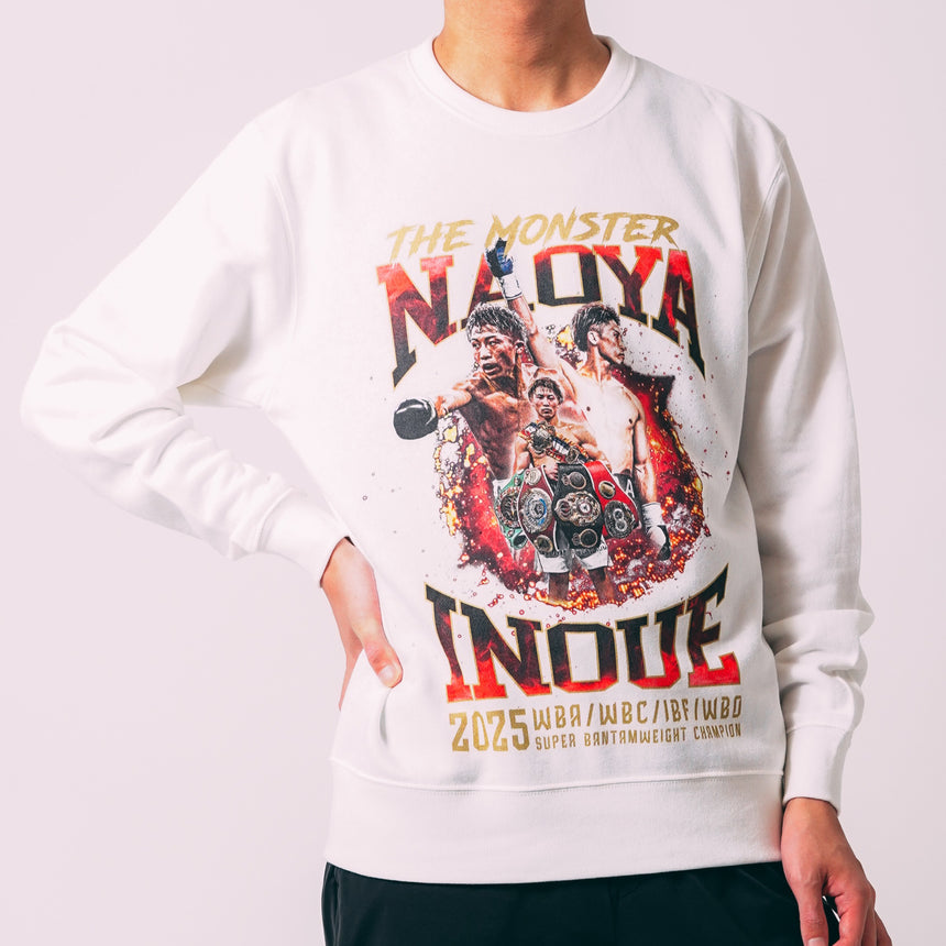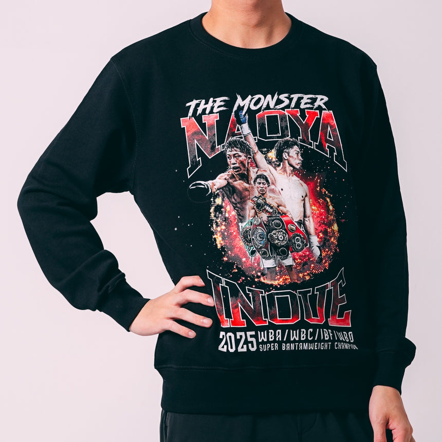 4団体統一王者・井上尚弥選手の比類なき才能と闘志を、炎のごときデザインで表現。